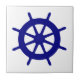 Décor côtier sur le thème marin de la marine bleue Nautical Ship Helm ou Wheel sur un arrière - plan blanc, conceptions nautiques pour la vie côtière ou la décoration de plage. Idéal pour un chalet balnéaire ou une maison de plage.