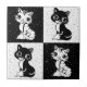 Monogramme À damiers noir et blanc illustration Kitty Chat Block Imprimer Motif Design