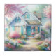 A dreamy blue cottage rests along a sunlit garden path, surrounded by blooming cherry trees and soft pastel florals. Gentle pinks, airy blues, and warm spring light create a peaceful cottagecore scene filled with charm and quiet nostalgia. The painterly watercolor style feels whimsical and storybook inspired, evoking cozy mornings, open windows, and flower filled lanes where time slows and beauty lingers. AI generated artwork.