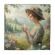 Une dame dégustant une tasse de thé dans un jardin fleuri