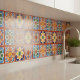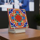 Add vibrant charm with this bold Moroccan star ceramic tile featuring red, orange, blue, and yellow geometric patterns. Perfect for backsplash, accent wall, or decor.
