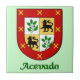 Nom Espagnol * Acevado * Carrelage décoratif du Bouclier Familial. L'arrière - plan est transparent pour que vous puissiez choisir une couleur qui correspond à votre décor, il suffit de cliquer sur Customiser juste en dessous de l'image. Votre nom est-il d'origine espagnole ? Nous pouvons rechercher votre nom pour vous et fournir un Carrelage, Chemise ou autre produit avec votre bouclier familial ici sur Zazzle! Demande-nous. Idéal pour les cadeaux ou les réunions de famille. Montrez votre fierté familiale !