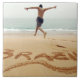 DROIT D'AUTEUR Stephanie Rabemiafara / Danita Delimont.com| AF36 SRA0000.jpg| BRÉSIL. Un homme baraché en maillot de bain sautant sur le sable au-dessus du nom du Brésil écrit dans le sable, sautant vers la mer
