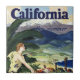 affiche vintage de voyage ferroviaire faisant la promotion de la Californie comme destination estivale.