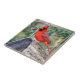Le cardinal rouge vif orne la carreaux de céramique. Accessoire lumineux pour décoration maison.