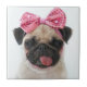 Chien Carlin avec la langue avec un ruban rose paillé, arrière - plan blanc.