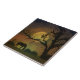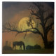 Une grande pleine lune entourée d'un chêne avec un joli cheval broutant au clair de lune. Une tuile d'art Cheval amusante et fantaisiste.