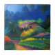 Peinture d'une couverture de maison avec des fleurs entourées de plantes insulaires et d'arbres.