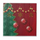 Des couches de fractales composent ce design de Noël stylisé. Une toile de fond rouge muet, un arbre vert épicé, des étoiles dorées et des flocons de neige suspendus à un fil de perles rouges et d'or, et trois boules rouges avec un design doré tourbillonnant accroché devant.
