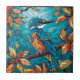 Un carrelage en céramique avec un martin pêcheur en automne dans le style vitrail.