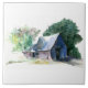 Grange rurale au milieu des arbres. Impression de la peinture originale aquarelle réalisée par John A. Muir.