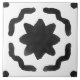 Cette carreaux en céramique est ornée d'un motif neutre, blanc et noir peint.