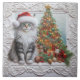 This ceramic tile features a Maine Coon cat wearing a Santa hat, sitting beside a beautifully decorated Christmas tree. A delicate, embossed white filigree frame enhances the artwork. The tile is versatile – perfect for display on a wood stand or incorporation into DIY craft projects. It also makes a heartwarming Christmas gift for any cat enthusiast. Susang6 created this design using AI tools.