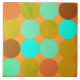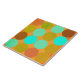 Motif circulaire moderne avec vert bleu turquoise, oranges et couleurs rouilles.