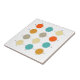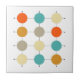 Ce carrelage en céramique moderne du milieu du siècle est lumineux et gai...ajoutez un peu de plaisir à votre projet de carrelage avec ce design mi-mod avec deux nuances d'orange, bleu turquoise, crème, cercles bronzés, sur des lignes en grille noire.