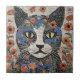 Carreau Chat Abstrait en mosaïque avec fleurs