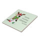 Chateau calico mignon habillé de lumières de Noël, de bois farcis, chapeau de Noël, et un grand arc vert sur fond de vert clair, Le chaton n'est pas heureux !