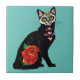 Un chat noir avec le jour du maquillage du crâne de sucre mort sur fond de turquoise