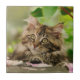 Un beau et enchanteur chaton tigré brun de ragondin du Maine, se reposant dans un jardin et observant avec des yeux de soulèvement. Un chat de cutie photographié par Katho Menden. Un cadeau pour des catlovers