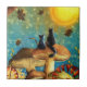 Image mignonne de deux chats assis au-dessus d'un champignon géant dans une forêt remplie de champignons qui observent les feuilles d'automne tomber contre le soleil et le ciel bleu pour créer un merveilleux panorama de l'histoire. .