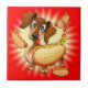 Un personnage de Dachshund Dog qui semble un peu confus et étonné, avec la langue pendante, et avec de grands yeux surpris parce qu'il réalise qu'il est un...hot dog Saucage ! Illustration d'image clipart vectorielle isolée sur blanc. Copyright BluedarkArt.