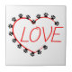 Dessins d'empreintes de pattes de chien, un coeur rouge et le mot "amour". Design original.