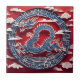 Dragon chinois inspiré par une image traditionnelle coupée en papier avec des nuages blancs devant un arrière - plan décoré. Conception sur carrelage en céramique.