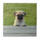 Photographie adorable de portrait d'un chiot de chiot piaulant au-dessus d'une table de pique-nique.