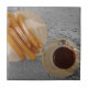 Une tasse de chocolat épais et riche a servi avec des churros, croquants sur l'extérieur et doux sur l'intérieur. Un des casse-croûte les plus délicieux au monde. Trouvé le long des rues et dans les cafés de l'Espagne aussi bien que de beaucoup d'endroits en Amérique latine. Montré ici avec l'arrière - plan d'un compteur martelé en métal à un café-restaurant local.