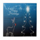 Christmas Party Reindeer Tree Blue Sky Shiny Stars ceramic tile. Unique, beautiful, stylish design. Easy to be personalized. Font style, size and colors can be changed. Matching items are available.