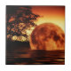 Une belle pleine lune tombant du ciel dans une rivière paisible qui coule.