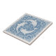 This intricate, vintage-inspired design features three graceful dolphins swimming in a circular, yin-yang-like arrangement. The dolphins, rendered in crisp white, are set against a richly detailed deep indigo blue background filled with elegant swirling scrolls, delicate dots, and organic maritime motifs suggesting waves and bubbles. The whole image is framed by a highly decorative, square border featuring sophisticated floral and baroque elements. Perfect for adding a touch of classic, Mediterranean, or coastal charm to any home decor item. Search ID1208 to see additional colors and design motifs in this series. Note: design may contain generative content