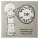 Little Boy est vu à travers un grand télescope. Les mots sur la lentille du télescope disent, "Focus sur la Foi". Illustration des paroles de David A. Carrizales par Christie Black. Le slogan "Croyez en l'incroyable qui est VOUS !" est vu ci-dessous.