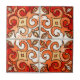 Art par Marta Harvey. Chaque petite tuile orange dans cette conception a été imprimée avec un bloc découpé par main, peinte avec des aquarelles et décrite avec le stylo et l'encre. Cette conception a été inspirée par les tuiles portugaises, appelées les azulejos.