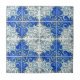 Art par Marta Harvey. Chaque petite tuile bleue dans cette conception a été imprimée avec un bloc découpé par main, peinte avec des aquarelles et décrite avec le stylo et l'encre. Cette conception a été inspirée par les tuiles portugaises, appelées les azulejos.