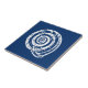 Tuile en céramique dans un seul bloc d'un coquillage en spirale, en blanc sur un arrière - plan bleu cobalt