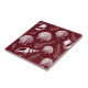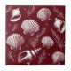 Carrelage en céramique dans un motif de coquillages et motifs délicats d'algues disposées sur un arrière - plan rouge marron profond, créant un contraste saisissant. Le travail détaillé de la ligne ajoute une sensation complexe et naturaliste à la composition.