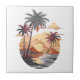 Carreau Coucher de soleil hawaïen avec palmier.