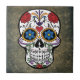 Parfait imprimé crâne à sucre pour Dia De Los Muertos (Jour des Morts), célébrations de pirates ou juste pour un usage quotidien. Crâne blanc aux roses rouges, accents bleu, violet et jaune sur un arrière - plan bronzé.