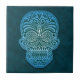 Cette conception symétrique de crâne de sucre est décorée des remous et des motifs de point bleus complexes. Les yeux du crâne sont faits de deux fleurs circulaires et il y a une étoile de cinq points au milieu du front. La conception se repose sur un arrière - plan bleu profond qui crée un beau contraste. Cette conception élégante de tuile est une représentation saisissante de ce jour du symbole mort.