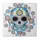Le crâne de sucre a conçu des tonalités de bleu et le rose est entouré par les fleurs et les coeurs colorés.