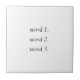 Utilisez ce modèle noir et blanc pour concevoir votre propre tuile en céramique typographie personnalisée Racontez votre histoire de vie d'affirmations positives, citations, motivation, inspiration trois mots. Insérez vos propres mots / texte dans les zones de droite. Vous pouvez aller customiser des polices, des couleurs, des tailles en sélectionnant l'option CUSTOMISER plus loin. Jouez avec d'autres polices et couleurs, changez de couleur arrière - plan ou téléchargez vos propres images, soyez créatif et concevez votre propre tuile inspirante ou motivante. Il peut être un accessoire unique pour vous ou un cadeau réfléchi cool pour quelqu'un d'autre.
