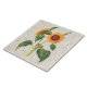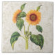 Carreau de céramique avec une illustration botanique vintage d'un tournesol du codex de Gottorfer, 1649-1659. Fleur jaune lumineuse avec la verdure sur un fond clair de texture de marbre d'or. Choisissez de deux tailles.