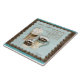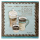 Tuile délicieuse d'art de café pour un trépied, une tenture ou une autre utilisations. L'art original par Audrey Jeanne Roberts a un beau motif brun chocolat de remous à la couleur d'eau et à un arrière-plan bleu de lavage d'aqua avec un trio des tasses de café complètement de café riche foncé. Un I un latte avec la crème fouettée, un café express et une tasse grande de Java. et déserts de chocolat du côté. Les bonbons au chocolat, les truffes et les framboises ajoutent une éclaboussure de couleur et conçoivent. Dans le texte est la citation inspirée, "café vous rend brillants. Les puissances de l'esprit d'un homme sont directement proportionnées à la quantité de café qu'il boit. Monsieur James Mackintosh, juriste écossais, historien et philosophe"