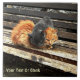 Deux chats mignons, un orange, un noir ; regardez le monde à travers les yeux endormis, après s'être réveillé d'une sieste serrée sur un banc du parc. Ajoutez votre propre texte.