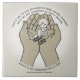Little Boy est vu assis dans une paire de grandes mains, les mains de Dieu, en portant une paire de chaussures trop grandes pour ses pieds. La citation de David A. Carrizales illustrée ici par Christie Black est : "N’essayez pas de vous mettre à la place, mettons-nous tous dans les mains de Dieu".