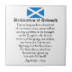 Les mots célèbres de la déclaration historique de l'indépendance écossaise connue sous le nom de déclaration d'Arbroath sur un carreau de céramique. La déclaration a été à l'origine écrite dans le latin et le 6 avril 1320 signée, à l'abbaye d'Arbroath, six ans après que Robert le Bruce a défait l'anglais chez Bannockburn en 1314. Imprimé dans le lettrage noir, elle lit "pour tant que mais cent de nous reste vivant, nous sur toutes les conditions ne sera jamais apportée selon la règle anglaise. Elle n'a en vérité pas lieu pour la gloire, ni la richesse, ni les honneurs que nous combattons, mais pour la liberté - pour seul cela, qu'aucun homme honnête n'abandonne mais avec la vie elle-même." Au-dessus de la déclaration est un graphique du drapeau écossais. Vous pouvez ajouter un arrière - plan de couleur avec le bouton de personnaliser. #the45 #the45andrising