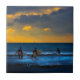English Scenes Series Une superbe photo montrant trois surfeurs qui vont pour la dernière plongée de la journée à Bantham Beach à Devon. Les cieux dorés sont éclairés par le soleil couchant et les derniers rayons attrapent les vagues qui éclaboussent, les transformant en bleu électrique. Code image : hrcol118