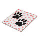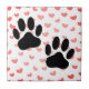 Empreintes de pattes de chien de dessin en noir sur arrière - plan blanc. Version motif de coeur rouge. Carrelage décoratif pour les maisons et les entreprises comme les animaleries. Idée cadeau pour les amoureux de les chiens.