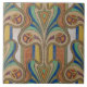 un grand carrelage au design art déco français. le carrelage est en céramique et ferait un parfait trivet. l'élégant motif art déco est beau en crème et rouille, bleu et vert, maïs et marron.
